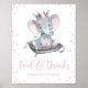 Girl elephant baby shower food table sign with adorable princess baby elephant on a silver glitter background. This cute girl elephant baby shower food table sign can be put into an 8x10 inch frame and placed on the table.