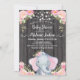Sweet Baby Girl Baby Shower Invitations. Girl elephant with floral headband on a pink polkda dot background. These sweet baby girl elephant baby shower invitations are easily customised for your event by simply adding your details and great for your baby shower or baby sprinkle!
