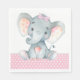 Girl elephant baby shower napkins with adorable baby girl elephant wearing a cute pink bow on a pink polka dot background. You can add text and a background colour to personalise.