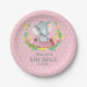 Girl Elephant Baby Shower Pink and Gray Paper Plate