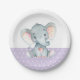 Girl Elephant Baby Shower Purple Paper Plate
