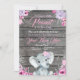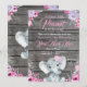 Girl Elephant Baby Shower, rustic, pink purple Invitation