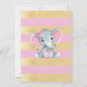 Modern Gold Pink baby Girl Elephant Guess the Price or Price is Right Baby Shower with golden and pink stripes background and customisable text.
