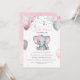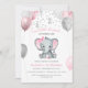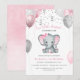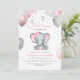 Girl Elephant Watercolor Balloons 1st Birthday Invitation