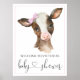 Girl cow farm baby shower signs with adorable watercolor baby cow calf with cute pink bow. This farm cow baby shower sign is easily customised for your event by simply adding your details. You can also change the background colour.
