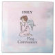 Send First Communion greetings and wishes to a special girl. The perfect gift, souvenir and giveaway depicting a girl angel on the design.