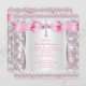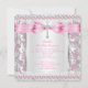 Girl First Holy Communion Cross Damask Pink Silver Invitation