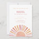This editable first trip around the sun birthday party invitation sets the tone for your sunshine theme first birthday celebration. The CYRUS Collection features a white background with a watercolor boho sun with rays in a retro colour palette of pink, orange and red-orange. A pairing of retro, serif and sans serif fonts with all editable text completes this girl sunshine 1st birthday party invitation.