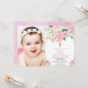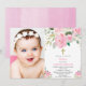 Girl floral baptism blush pink photo invitation