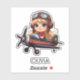 This aviation sticker is made for girls who dream of flying high. Featuring a cartoon of a young girl dressed as a pilot flying a vintage airplane, it captures courage, imagination, and the excitement of taking control of the skies.