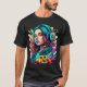 This t-shirt design celebrates the "Girl Gamer" spirit, featuring a bold and vibrant illustration of a confident female gamer. She’s depicted with gaming gear such as a headset, controller, or keyboard, surrounded by fun, tech-inspired elements like pixelated graphics, neon lights, and game icons. The design combines a strong, empowering vibe with a playful and modern aesthetic, perfectly capturing the passion and skill of female gamers.
