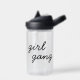 Simple, stylish "girl gang" quote design in modern minimalist script typography in black and white. Celebrate women and girl power for all celebrations, a bachelorette party or a cute matching set for mother and daughters, sisters and your female friends!