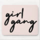 Simple, stylish "girl gang" quote mouse mat in modern minimalist script typography in off-black on an baby pink background to celebrate women and girl power! Perfectly versatile for everyday, a bachelorette party or a cute matching combo for mother and daughters, sisters and friends!