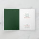 The front of this Christmas greeting card features a vintage image of a little girl dressed in a red winter coat and hat, who is pulling through the snow holly for decorating. The matching green and red text says "Christmas JOY". The image is bordered in dark green with a gold and green frame. The inside of the card has the matching green background on the left. The other side is white, with custom text fields. Celebrate Christmas the old fashioned way with this beautiful card, and make it say whatever you'd like.