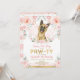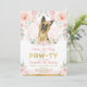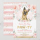Celebrate your little girl's birthday with this beautiful invitation featuring an adorable German shepherd puppy surrounded by gorgeous blush pink flowers and delicate watercolor greenery