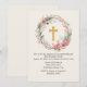 Girl Gold Cross Pink Floral Religious Baptism Invitation