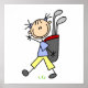 A cute cartoon stick figure female golfer with a golf bag and clubs design on golfing T-shirts, hoodies, bags, mugs, magnets, mousepads, keychains, water bottles, pillows, and much more.