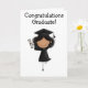 Graduation Girl Folded Card. Dark Haired Girl in Black Cap and Gown Jumping in the Air with Diploma. Graduation Card. Customizable. Multiple Sizes.