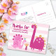 “Thanks for stomping by”. A fun, whimsical, playful visual of two cute, bold, kawaii, pink brontosauruses and fun, handwritten typography over a light pink and white striped background, helps express your appreciation. A cool type treatment of the work “roar” and your custom note are on the back. Say thank you to your guests with these adorable, modern, simple dinosaur girl custom preschool and/or kindergarten thank you postcards. On the front, personalise with her name. Type a custom note on the back or leave blank for your handwritten message. Also add your return address. Matching invites, banners, yard signs, stickers, and other goodies are also available in this special and fun collection. Guaranteed to add a stylish touch to your correspondence!