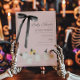 Cute Halloween themed baby shower invitation with a black bow and ghosts.