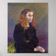 This design features an original painting by Belgian neo-impressionist artist Theo van Rysselberghe (1862–1926). It is a portrait of a beautiful young woman wearing a dark green dress; she has long and flowing red hair.