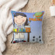 Girl in Science Lab pillow, features a girl scientist in a lab coat in the lab working with beakers and test tubes.