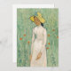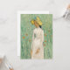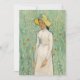 Girl in White (1890) | Original artwork by Dutch post-impressionist artist Vincent van Gogh (1853-1890). The painting depicts a woman wearing a white dress and yellow straw hat, standing in a soft green field scattered with red flowers.