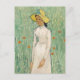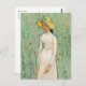 Girl in White (1890) | Original artwork by Dutch post-impressionist artist Vincent van Gogh (1853-1890). The painting depicts a woman wearing a white dress and yellow straw hat, standing in a soft green field scattered with red flowers.
