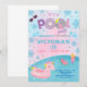 Girl winter indoor pool party birthday invite.