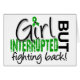 Depression warriors, declare your empowerment over this unwelcome opponent by letting it and everyone around you know that, while your life may have been interrupted, it is “temporary” because you are fighting back with our collection of Girl Interrupted t-shirts, merchandise, and gifts featuring an array of text fonts and a striking green Depression support ribbon as the "dot" above the "I" in GIRL.