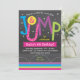 Girl Jump Birthday Party Chalkboard Pink Purple Invitation