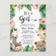 It's a Girl ! Jungle Safari Animal Tropical Floral Greenery Cute Baby Shower Invitation Card. Celebrate the upcoming arrival of your precious baby with this festive, chic and beautiful Invitation card. All the texts are pre-arranged for you to personalise easily and quickly with your baby shower details.