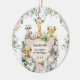 Cute safari themed ornament featuring adorable jungle animals, pretty pink flowers and rustic botanical greenery.