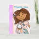 Cute modern graphic girls after party thank you card. Girl clutching her lucky white bunny. Personalise this card with the thank you message of your choice. Original design by Sarah Trett.