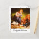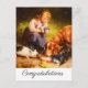 This fully customizeable Congratulations vintage cat postcard features a restored reproduction of The Dinner Party, a circa 1885 oil on canvas by famous Austrian cat and dog painter Carl Reichert, 1836–1918. This scene depicts a pretty little girl holding a cute kitten while she oversees three other little kittens and a reddish brown retriever dog drinking from a bowl of milk. You can easily change all text fields' wording; font style, colour and size or delete them altogether with the Zazzle Personalise button.