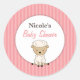 Girl Lamb Baby Shower Pink Stripe Classic Round Sticker