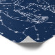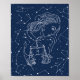 A graphic fantasy white linear illustration of the Libra zodiac sign on a navy blue background.