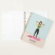 This planner features Destei's illustration of a cute brunette girl who is lifting light weight dumbbells. She is wearing a green tank top and black leggings. The girl is standing on a pink yoga mat. There is a blue waterbottle behind her and some more dumbbells by her feet. Under the girl there are personalizable text areas for the title of the planner.