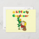 A little blonde girl looks up to see the top of the corn stalk growing in her garden on this cute and colourful gardening design on T-shirts, mugs, mousepads, stickers, and other gardening items.