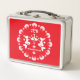 This is a standard metal lunchbox that appears to work just fine. We designed this box ourselves with an uploaded photo and custom text on the front and back. It looks absolutely beautiful except the front of the lunchbox is not centered like it shows in the photo. The print borders don't align with the inset flat part of the box where the preview photo online showed it perfectly centered in there. The back looks nice and centered though.