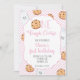 One Tough Cookie! Milk and Cookies birthday party invite in pink with chocolate chip cookies and milk bottles and pink straws. First Birthday Invite.
