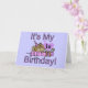 Girl Monkey 1st Birthday greeting card featuring an adorable girl monkey with a giant pink and lavender striped candle and a party hat and text that reads "It's My 1st Birthday!".