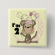 Girl Monkey in Party Hat 2nd Birthday 15 Cm Square Badge