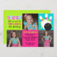 Girl Neon Bowling 3 Photo Birthday Invitation