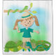 A cute shower curtain for girls who love reptiles and safari hikes! Features a girl with safari hat, a snake wrapped around a tree branch, a polka dotted snake, lizard, and turtle!