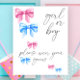 Girl or Boy. Watercolor blue and pink bows with gender reveal party.
