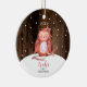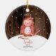 Girl Owl Cute Personalised Woodland Baby Christmas Ceramic Ornament. Personalise with your custom information on both front and back.