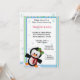 Cute penguin baby shower invitations just for girls. Colourful background. Penguin has a cute green hair bow and is standing on an iceberg. Kristi W/Graphic's n Bits.