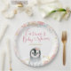 Girl Penguin Winter Snowflake Baby Shower Paper Plate