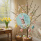 Girl Photo Bunny Ears Cute Blue Ceramic Tree Decoration